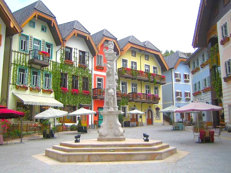 Main Square, Copy of Halstatt, near Huizou, Guangdong Province by Chinadoc licensed under CC BY-SA 4.0